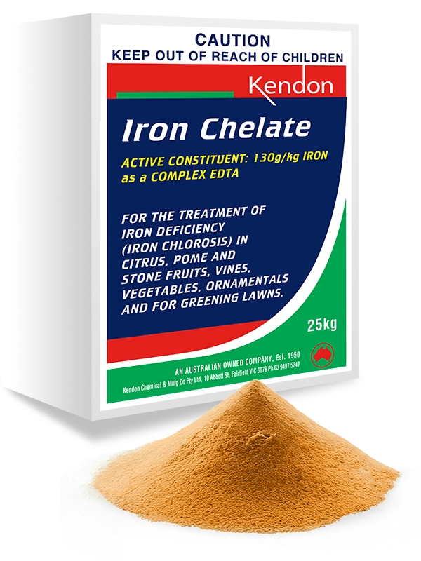 Kendon Iron Chelate is developed for the treatment of Iron deficiency (Iron Chlorosis) in citrus, pome and stone fruits, vines, vegetables, ornamentals and for the greening of lawns.